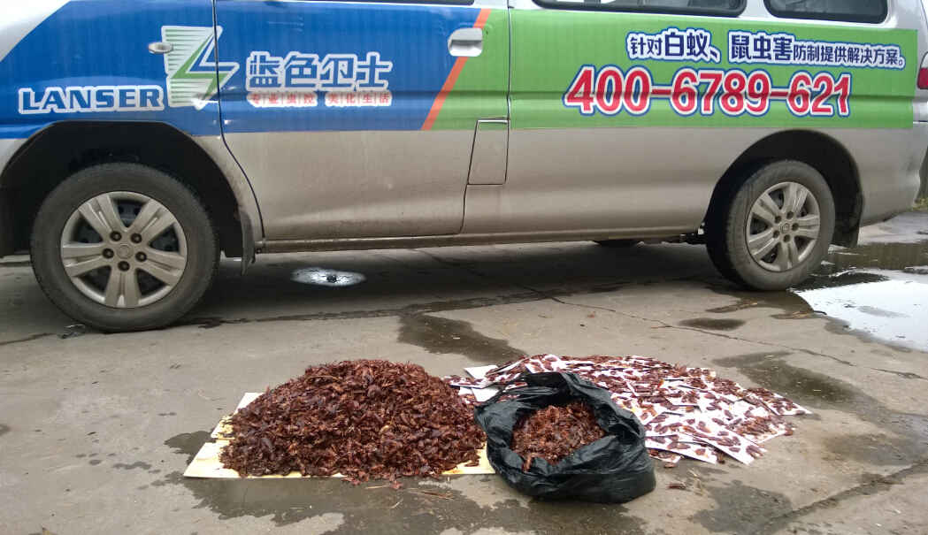 前不久我公司在省內(nèi)某單位看展除蟲工作時(shí),在剛?cè)雸龅臅r(shí)候,該單位由于長年乜有開展滅蟑螂工作,因此蟑螂密度非常之高,庫房墻壁、下水道、墻體縫隙等地方隨處可見,但客戶又要求采用純物理措施進(jìn)行,工作難度非常大,我公司在參考多種方法之后,通過吸捕、粘捕、燙殺、誘集等多種方案,最終有效的解決了客戶的蟑螂問題。在每天進(jìn)行的蟑螂收集工作中,集中回收的蟑螂達(dá)數(shù)十公斤,整個(gè)工程完成統(tǒng)計(jì)匯總蟑螂尸體達(dá)數(shù)百公斤。