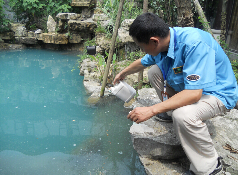 許多客戶單位內(nèi)都有大量的景觀水體,而景觀水體中又放有魚類等水生動物,為此在對這一蚊蟲孳生地處理時,我們需要選用等水生動物無毒的生物殺蟲劑進行蚊幼殺滅。